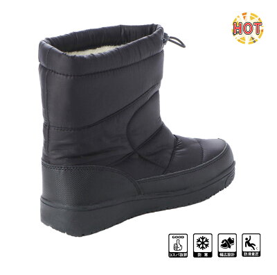 中綿入りとボア付きで保温効果がバツグン、更にドローコードで履き口を締めることで風雪をシャットアウト、軽量かつ防滑仕様の厚底で雪道も安心。